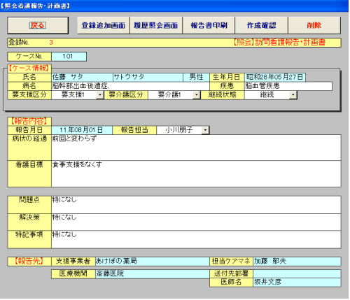 訪問記録から報告書や計画書の作成も可能なうえ、報告書、計画書もコピーができます。 |