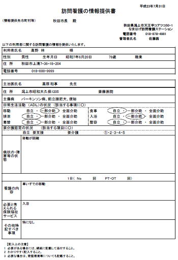 介護訪問における訪問記録、報告書、計画書、予定表など作成管理できます。 |