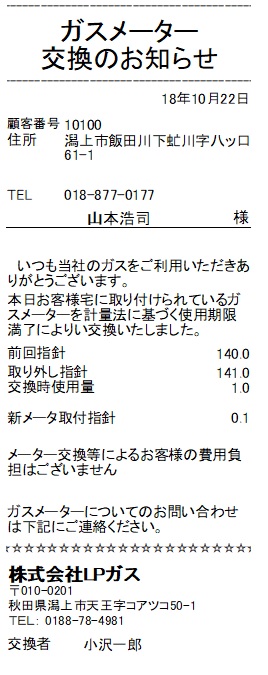 検針システムでメーター交換の予告のお知らせを発行、メーター交換システムで交換完了のお知らせの発行ができ、丁寧な顧客対応が行えます。